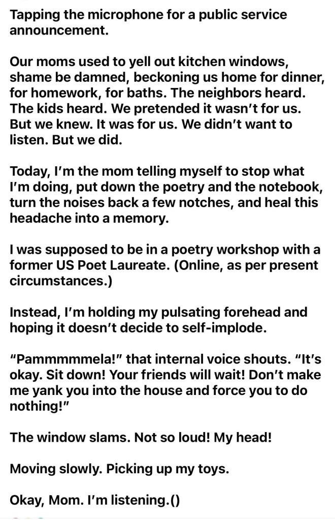 She hated when I hid myself in oversized clothing. Choose leggings with sweaters, not XX-large loose-fitting pants, she said. Why are you trying to disappear? Why don’t you want to be seen?